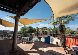 Highland Village, often recognized as the epicenter of Rough Hollow, serves as a testament to the community's dedication to both entertainment and well-being. This water-themed community center features a fitness center, a yoga studio, and multifunctional meeting spaces, elevating the lakeside living experience. Its event pavilion includes a demonstration kitchen, an open-air marketplace, and an amphitheater. Highland Village offers an immersive experience, made possible by its dedicated Full-Time Social Director who curates a diverse range of activities. These include culinary classes, festive gatherings by the children's zero-depth entry pool, an adult pool with a swim-up bar, and even pet-friendly events.
